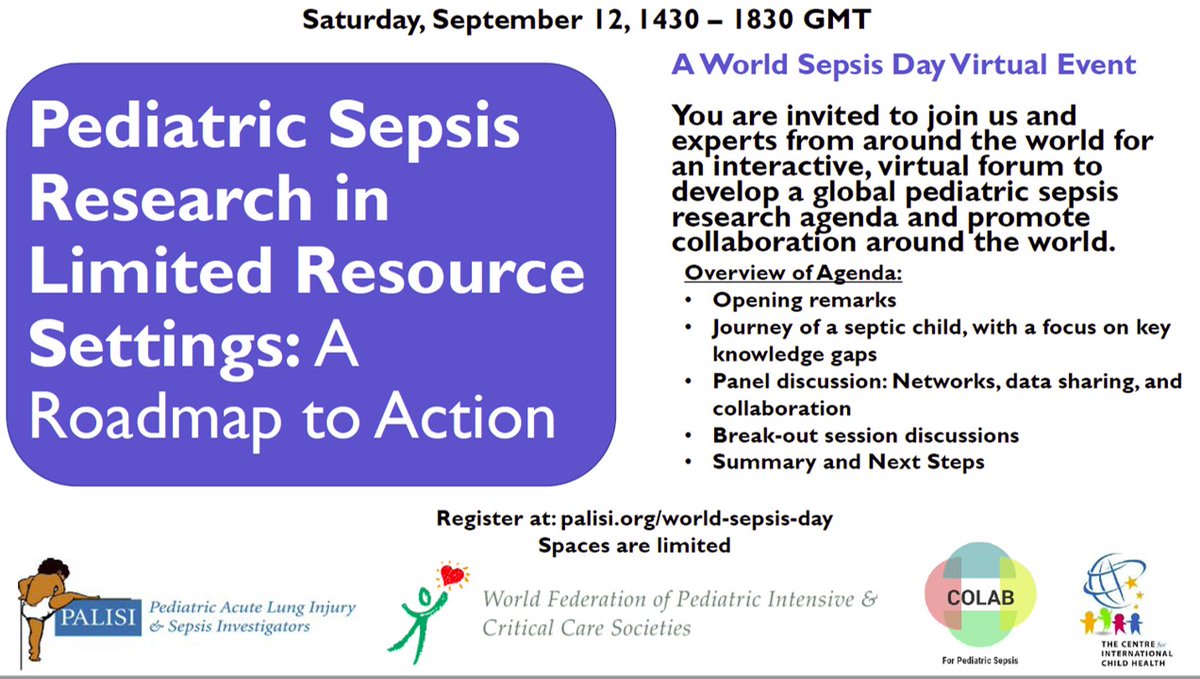 This event, organized by the Pediatric Acute Lung Injury and Sepsis Investigators Network, will focus on the entire journey of a critically-ill child - from community-level recognition of sepsis to post-discharge care. A morning of short talks will be followed by breakout rooms to generate discussion and roadmap for improving pediatric sepsis care globally.